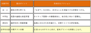 新学期、まず何に注力すべきかを表にまとめました。